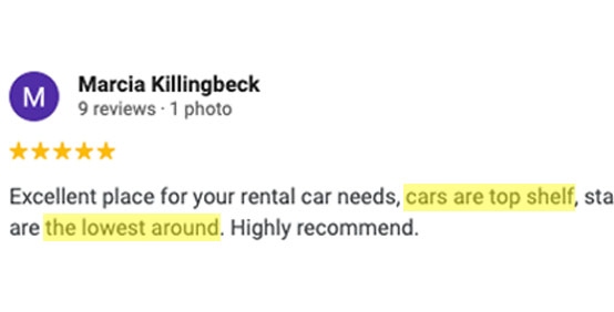 The ONLY rental company offering the newest vehicles with low miles – that means fresh, clean, and FUN! You’ll NEVER rent from another car rental company again. Oh yeah, you’ll also pay LESS.
